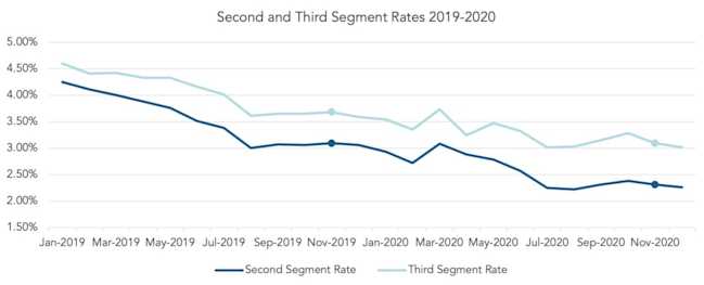 As this data indicates, November 2020 interest rates were down significantly vs. November 2019 rates. (We note that the decrease in 2020 rates was significant across all lookback months, with the October 2020 rates marginally higher than other months’ rates.)