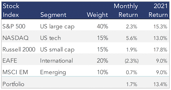 Stocks were mixed but mostly positive last month. A diversified stock portfolio gained almost 2% in June and is now up more than 13% for the year: