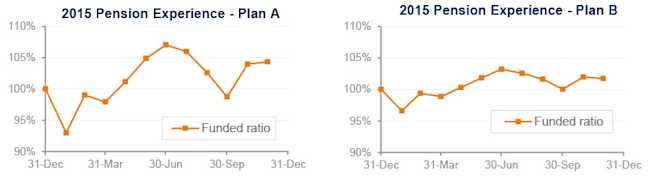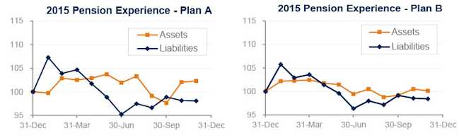 As we said, 2015 is quietly looking like a solid year for pension finance. Assets have performed modestly, but higher interest rates have provided a tailwind, reducing pension liabilities a couple percent this year.