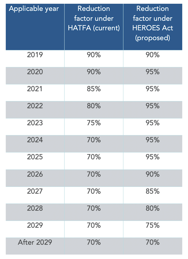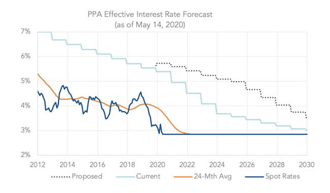The table below summarizes interest rate stabilization under (current) HATFA rules and (alternatively) under the HEROES Act proposal.