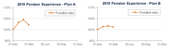 Pension finances slipped in March due to falling interest rates. Both model plans we track[1] lost ground last month: Plan A dropped more than 2% but remains up 2% for the year, while Plan B lost close to 1% but remains ahead 1% through the first three months of 2019.