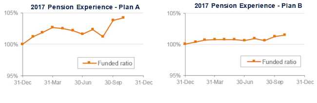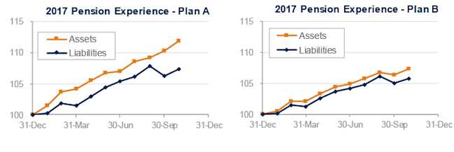 The graphs below show the movement of assets and liabilities for our two model plans during the first ten months of 2017: