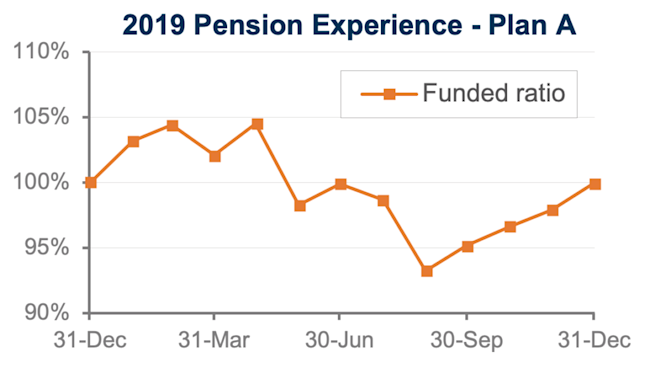 2019 was the best of times, then the worst of times, then the best of times again for pension finance. Overall assessment: meh. During December, both model plans we track[1] gained ground for the fourth consecutive month: Plan A improved 2% and finished 2019 even, while Plan B gained less than 1%, ending 2019 up less than 1%: