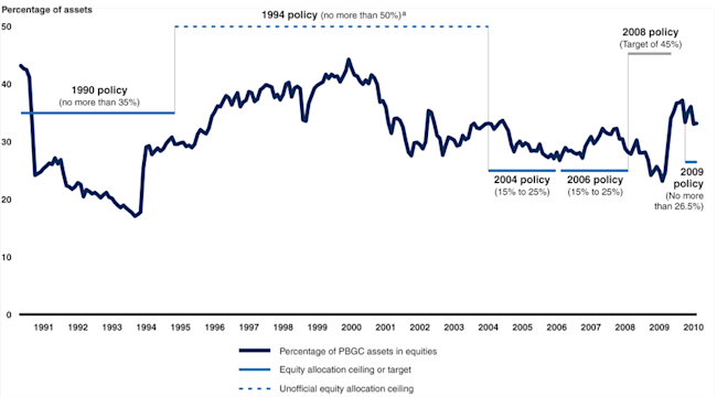 Many consider PBGC’s asset allocation strategy problematic. Here’s what the Government Accountability Office said about it in its 2011 report: