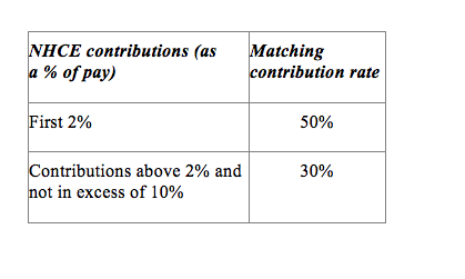 To qualify for the new safe harbor, the sponsor would have to make matching contributions for NHCEs as summarized in the following table.