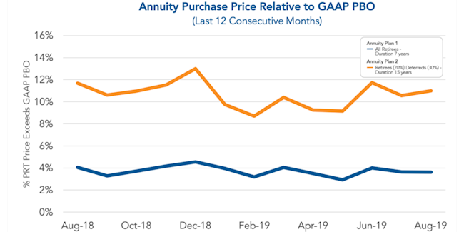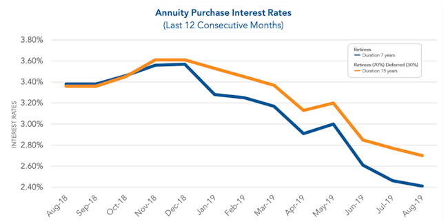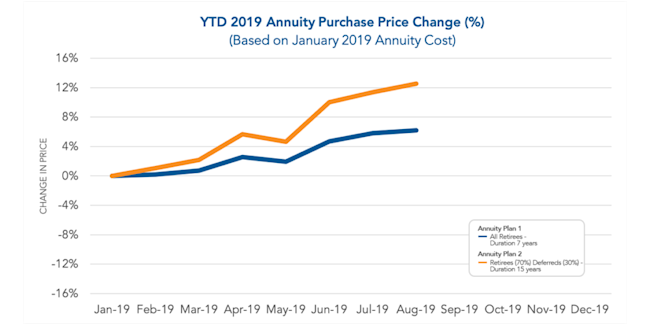 There was a noticeable drop in annuity purchase interest rates in the first and second quarter of 2019. This trend has continued as rates fell again in August. During our experience in 2019, insurers have been aggressively pricing annuity purchases.