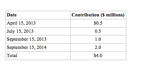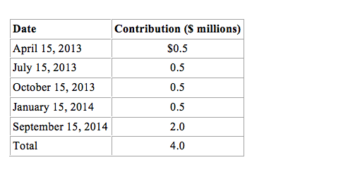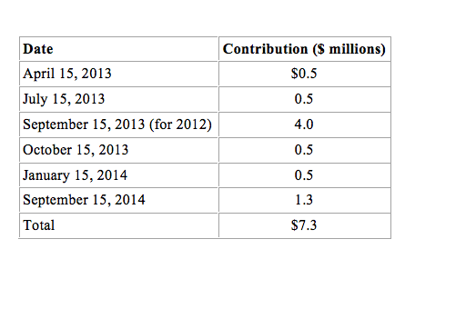 The September 15, 2014 contribution of $2 million is the ‘true-up’ of the $4 million required contribution minus the $2 million in quarterly payments.