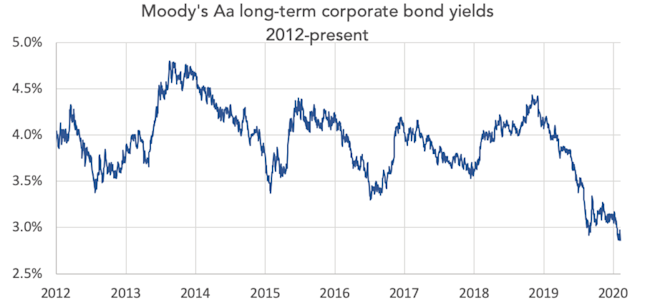 Since mid-July 2019, these yields have been (significantly) below 3.5% (2.92% as of February 13, 2020).