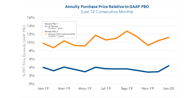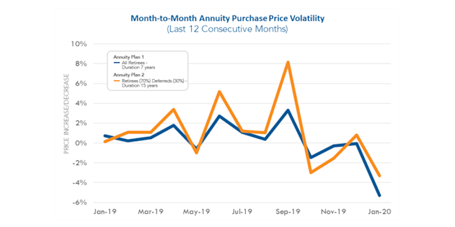 This increase in rates since September led to a corresponding decrease in annuity purchase prices of approximately 7% for both Annuity Plan 1 and Annuity Plan 2. The activity of plans purchasing annuities remained constant throughout 2019 and then dramatically increased in the fourth quarter. During our experience, insurers priced annuity purchases in 2019 aggressively and insurers are continuing to do so at the start of 2020.