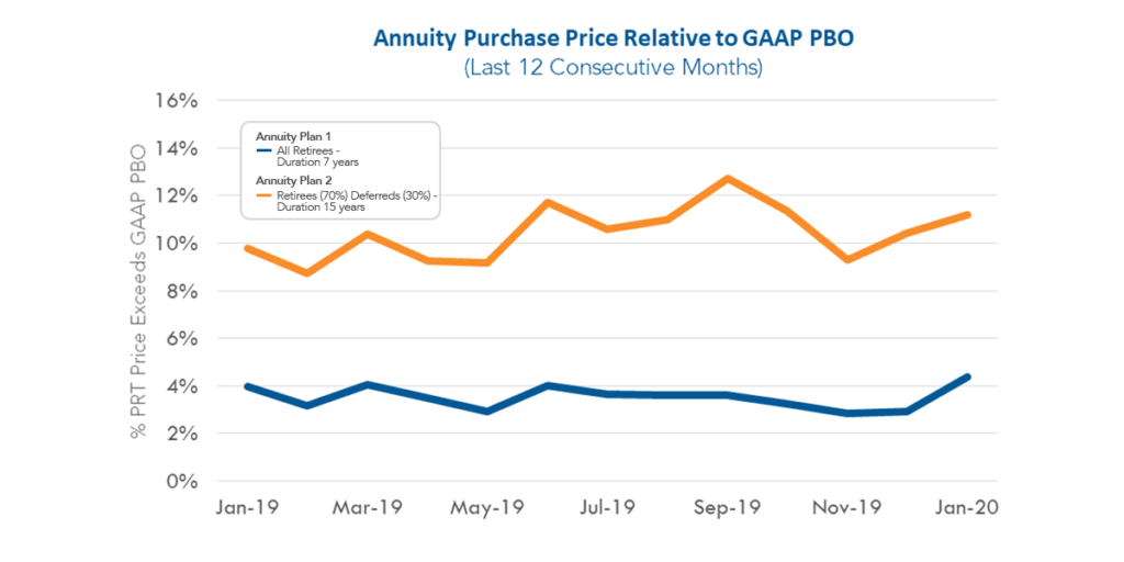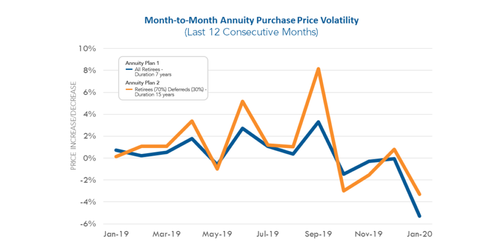 This increase in rates since September led to a corresponding decrease in annuity purchase prices of approximately 7% for both Annuity Plan 1 and Annuity Plan 2. The activity of plans purchasing annuities remained constant throughout 2019 and then dramatically increased in the fourth quarter. During our experience, insurers priced annuity purchases in 2019 aggressively and insurers are continuing to do so at the start of 2020.