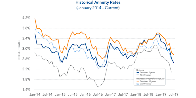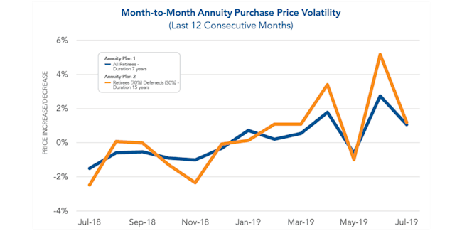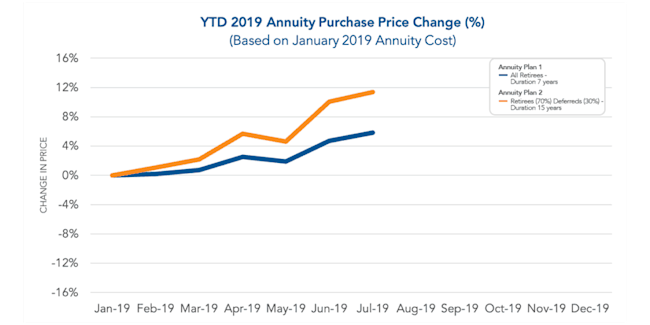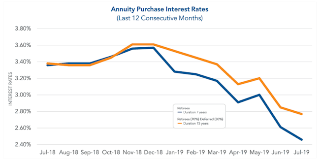 The first quarter of 2019 shows a noticeable drop in annuity purchase interest rates. The second quarter has continued the trend as rates fell again in July. Our experiences during 2019 have been that insurers are pricing annuity purchases aggressively. Annuity purchase prices have not risen as much as expected based on this year's drop in interest rates. We do not know how long this favorable, aggressive pricing from insurers will last.