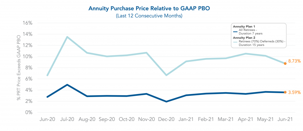 % Annuity Purchase Price Exceeds GAAP PBO – Past Month: | - 0.08% | - 1.39% |