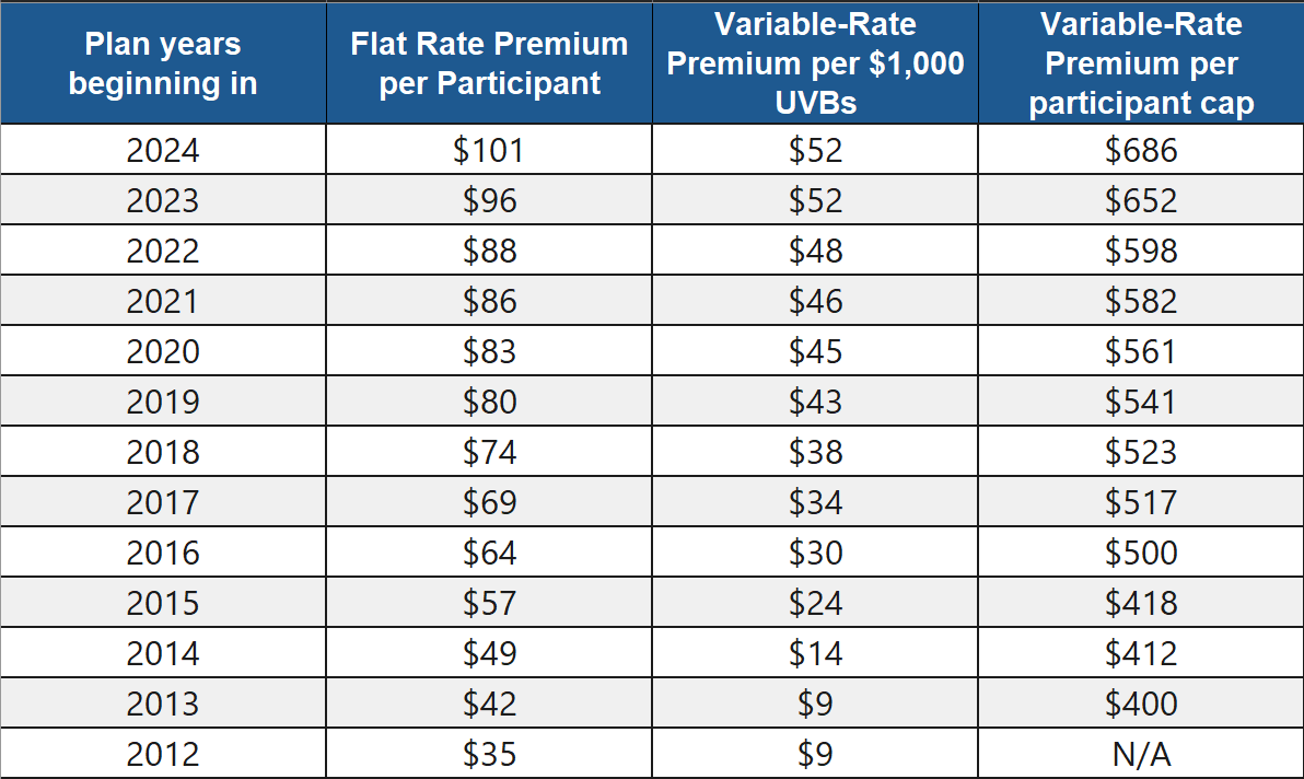 The cost to maintain a defined benefit pension plan has skyrocketed. The primary reason is the premiums paid to the Pension Benefit Guaranty Corporation (PBGC).