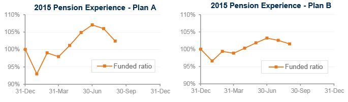 Fears of a slowdown in China rippled through financial markets in August, producing drops in stock markets around the world and erasing most of the ‘cushion’ pension sponsors had built up during 2015. Both model pension plans we track lost ground in August – Plan A slipped more than 3% and Plan B lost more than 1% on the month – but both plans remain up about 2% on the year through August.
