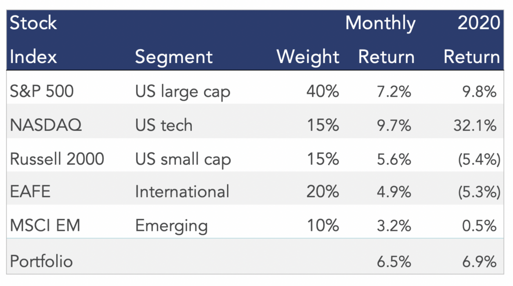 Stocks extended their winning streak to five consecutive months, led by the NASDAQ, which has enjoyed a return of more than 30% this year. A diversified stock portfolio is now up almost 7% for 2020, after being down more than 20% at the end of the first quarter.