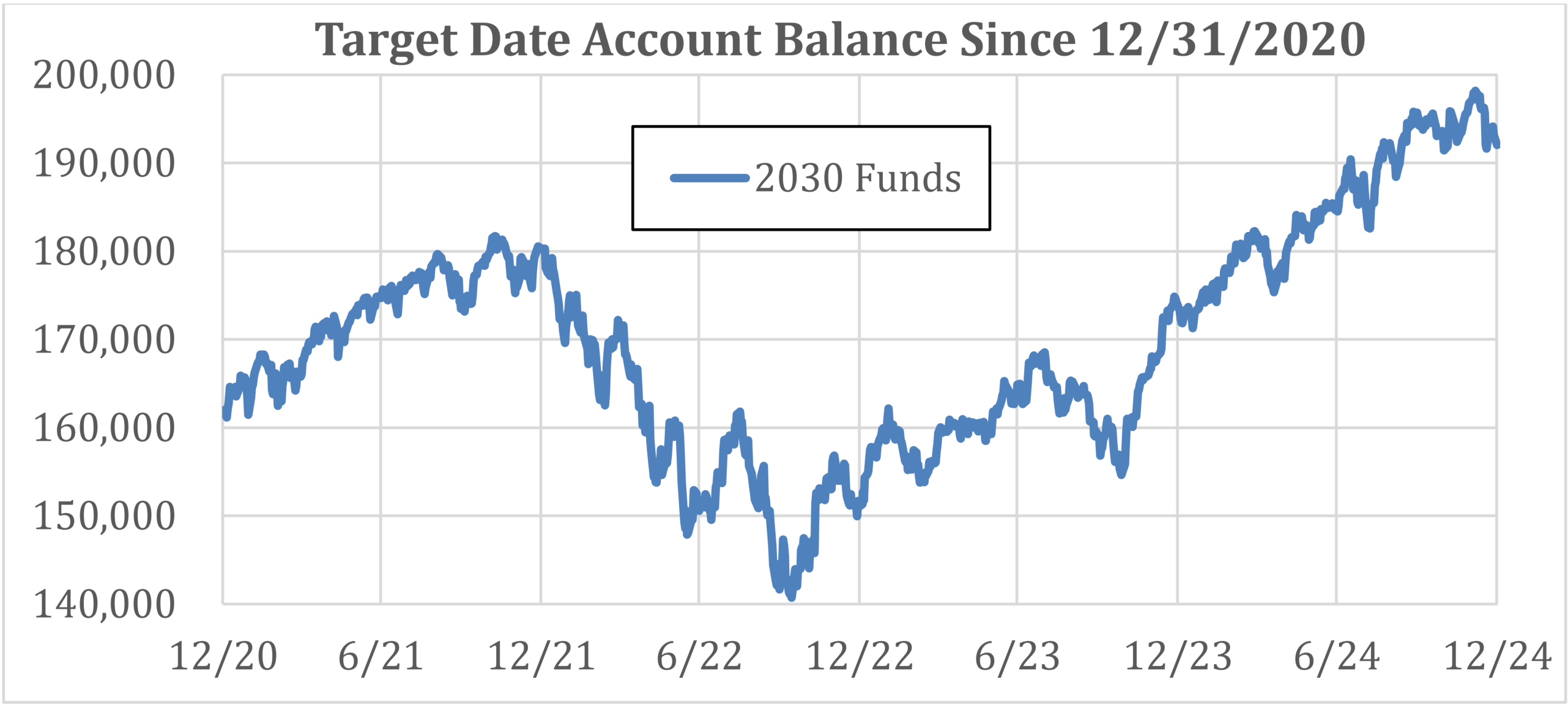 We began our review the effect of 2024 financial market performance on defined benefit plans generally with our recent article on de-risking via lump sums (and lump sum windows). In this article, however, we want to consider the effect of the last four years of financial market performance on DC plans/participants and the DC retirement income equation.