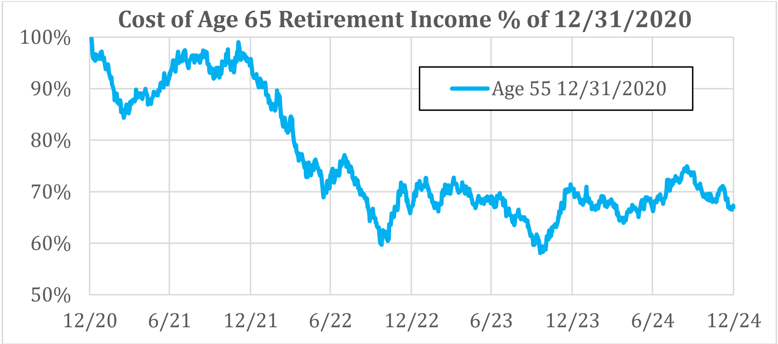 But this money isn’t for buying widgets, it’s for buying retirement income. And interest rates are up 3% since the end of 2020 (much of the reason for the poor asset performance), reducing the cost of retirement income by 33%, despite the fact that the participant is now four years closer to retirement.