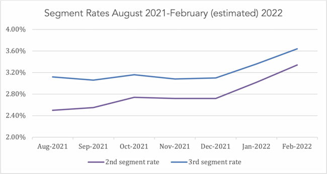 As of February 2022, market interest rates are up significantly over 2021 rates.