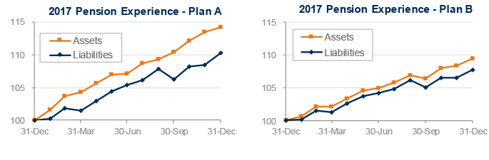The graphs below show the movement of assets and liabilities for our two model plans during 2017: