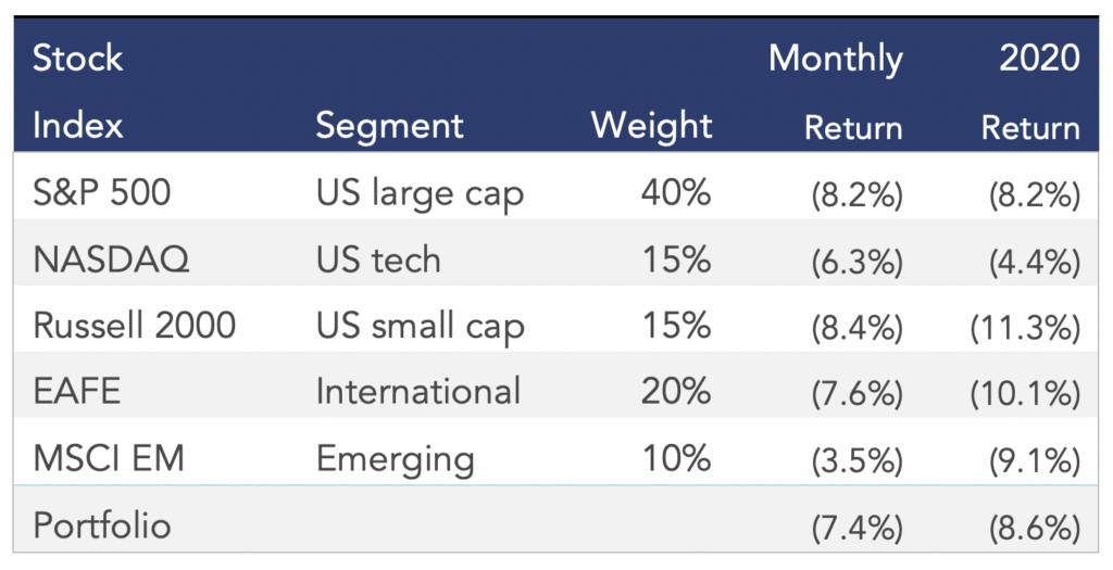 Overall, our traditional 60/40 portfolio lost 3% in February and is now down 3% for the year, while the conservative 20/80 gained a fraction of 1% last month and is now up almost 3% through the first two months of 2020.