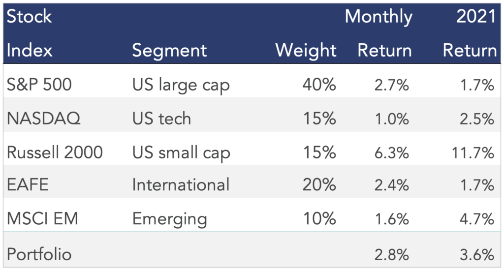 Stocks rose again last month, building on a modestly positive January. A diversified stock portfolio gained 2%-3% in February and is now up 3%-4% for the year: