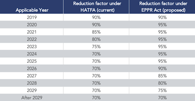 The table below summarizes interest rate stabilization under (current) HATFA rules and (alternatively) under the Emergency Pension Plan Relief Act proposal.