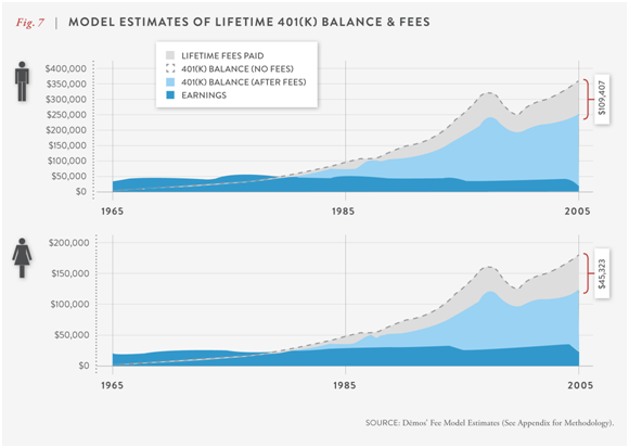 In a paper that has gotten considerable press attention, The Retirement Savings Drain; The Hidden & Excessive Costs Of 401(K)s, Dēmos found that 401(k) fees “are excessive—i.e. more than necessary to deliver excellent returns to savers — and can cost savers tens or even hundreds of thousands of dollars over the course of their lifetimes.” The scare headline from Dēmos’s paper is — “Could Your 401(k) Fees Buy a House?”