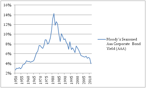 Chart 1: Moody’s Seasoned Corporate Bond Yield (AAA) 1950-2011 (December monthly average)
