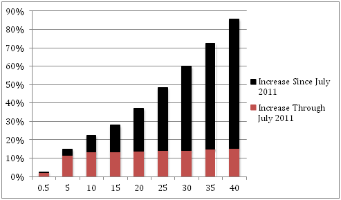 The following chart shows (1) the total increase in the value of payments, at various points in the future, attributable to changes in interest rates since 2007 and (2) the portion of that increase since July 2011, which includes the impact of Operation Twist.