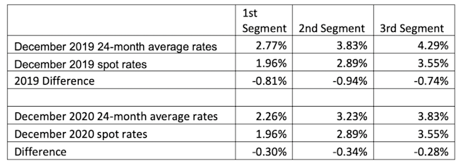 If interest rates remain at current levels, savings from adopting the spot rate method for 2019 would be more than offset by significantly higher premiums in 2020 and 2021. That result obtains regardless of what lookback month is used.