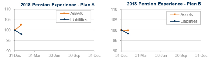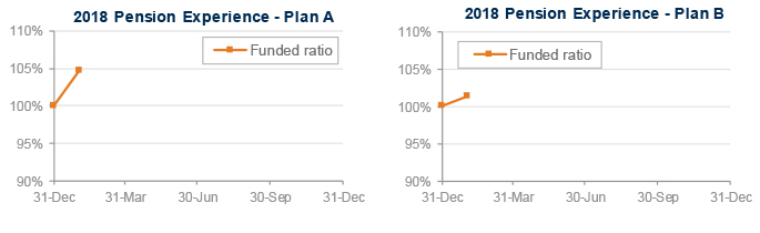 2018 started out with a bang for pension sponsors, with both stock markets and interest rates moving higher, producing the best month for pension finance in almost three years. Both model pension plans we track1 were up last month: Plan A gained 5%, while Plan B gained more than 1%: