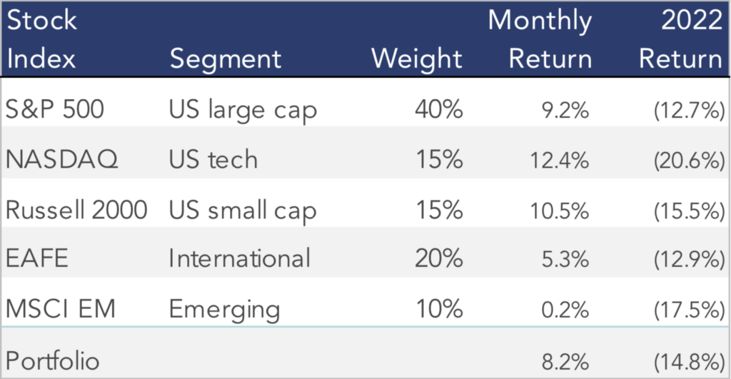 Stocks enjoyed their best month of the year, led by US markets. A diversified stock portfolio gained 8% in July but remains down almost 15% so far during 2022: