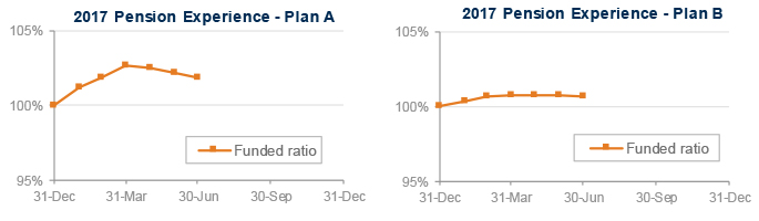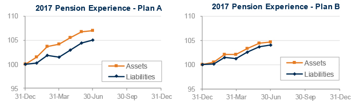 The graphs below show the movement of assets and liabilities for our two model plans during the first half of 2017: