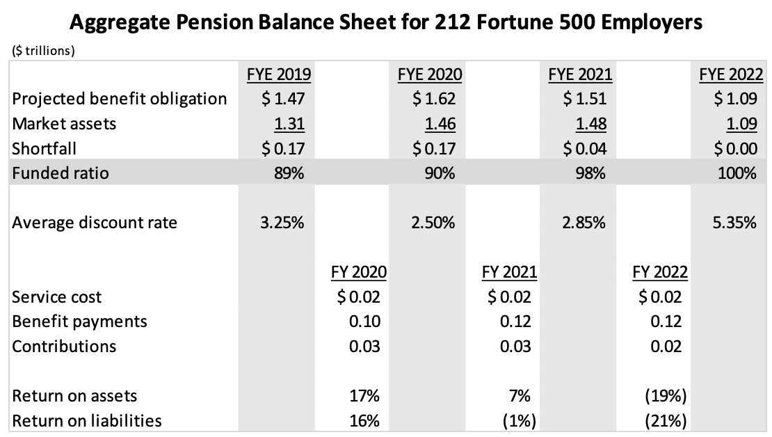 The table below summarizes the performance of the DB plans of 212 companies of the Fortune 500 – the top half of the US corporate pension universe.