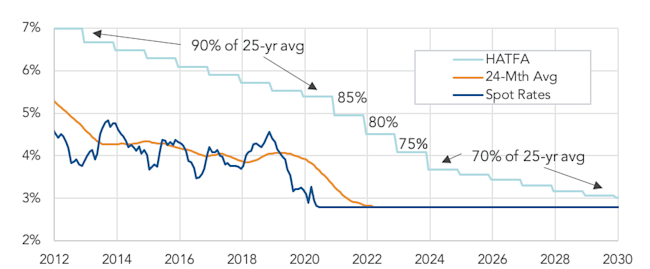 The chart below projects market and HATFA 25-year average rates based on current conditions.