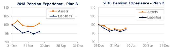 Higher interest rates (up more than 0.40% so far this year) and positive, if modest, stock market returns have combined to produce positive results for pension sponsors during the first five months of 2018.