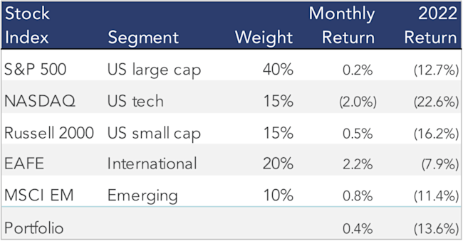 Stocks were mixed in May. A diversified stock portfolio added a fraction of 1% in May but is still down almost 14% year-to-date: