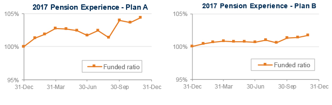 The graphs below show the movement of assets and liabilities for our two model plans during the first eleven months of 2017: