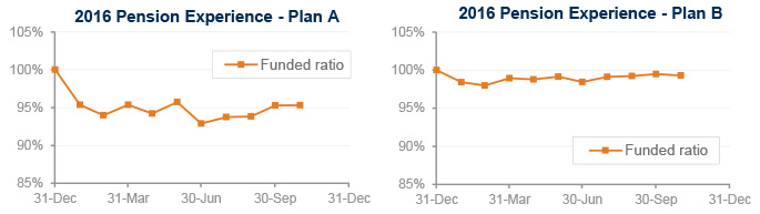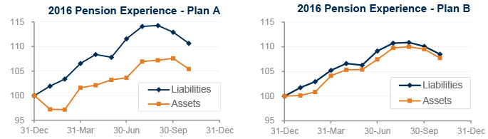 Interest rates remain 0.5% lower than at year-end 2015, so growth in pension liabilities continues to outpace asset growth through the first ten months of 2016.