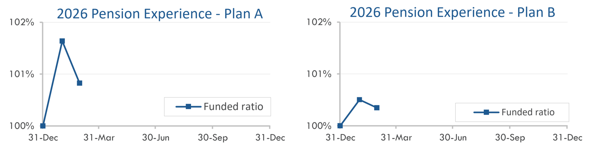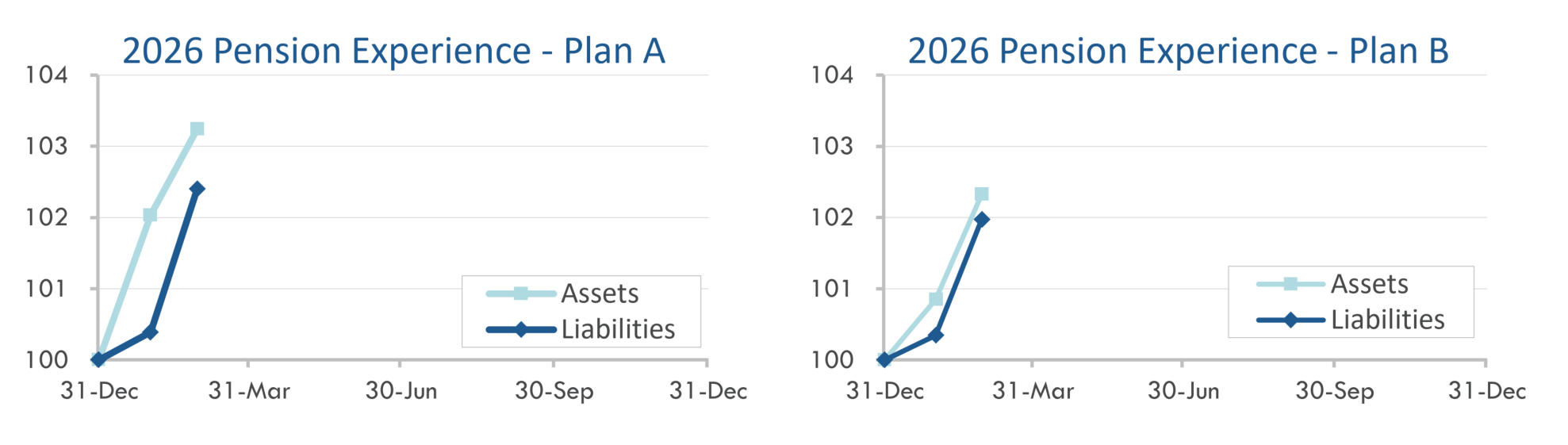 Corporate bond yields declined 0.15% in February after a flat January. As a result, pension liabilities have grown 2%-3% through the first two months of 2026, with long duration plans seeing the largest increases.