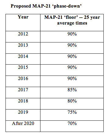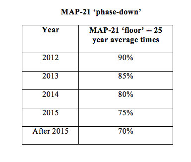 The table below shows the effect of using a 90% MAP-21 multiplier for years 2012, 2013 and 2014 (years for which we have actual rates).