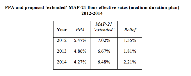 2012, 2013 and 2014 rates — current (PPA+MAP-21) rules