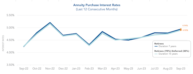 Average Annuity Purchase interest rates hit record highs for 2023.