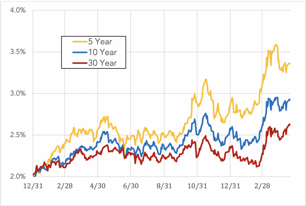 The TIPS spread has increased by 1.41%, 0.93%, and 0.60% over 5, 10, and 30 year horizons over the period January 1, 2021 – April 20, 2022.