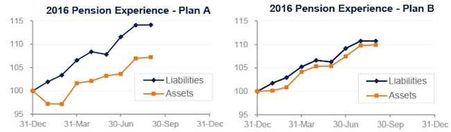 2016 remains a decent year for pension assets, but the dominant theme remains all-time low interest rates and their effect on pension liabilities. At the end of August, interest rates are just a bit above all-time lows, producing pain for pension sponsors.