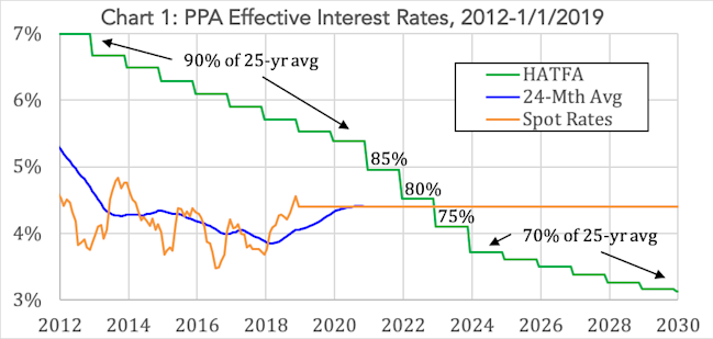 During the period 2019-2020, HATFA rates will go down marginally as more “low interest rate” years are added to the 25-year average.