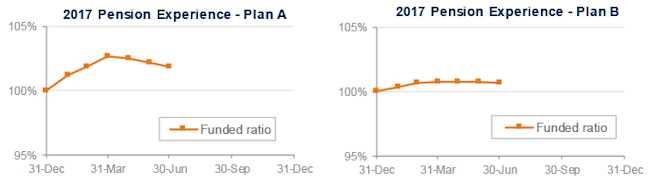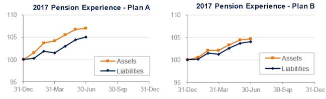 The graphs below show the movement of assets and liabilities for our two model plans during the first half of 2017: