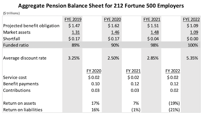 The table below summarizes the performance of the DB plans of 212 companies of the Fortune 500 – the top half of the US corporate pension universe.