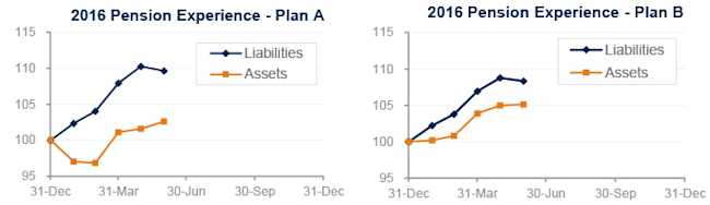 The move pushed pension liabilities down close to 1% last month; liabilities are now 8%-10% higher than at the end of 2015, with long duration plans seeing the biggest increases.