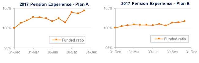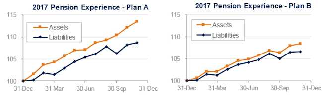 The graphs below show the movement of assets and liabilities for our two model plans during the first eleven months of 2017: